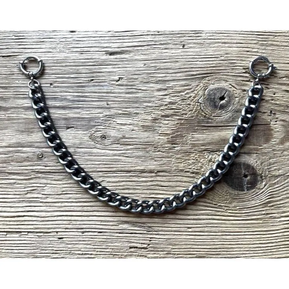 Hier habe ich einen leichten Kettenrohling aus ALU in antik-silberfarben angefertigt (nur 30 g!), da die Charivariketten aus Eisen mit den Anhängern bestückt mitunter sehr schwer werden.
