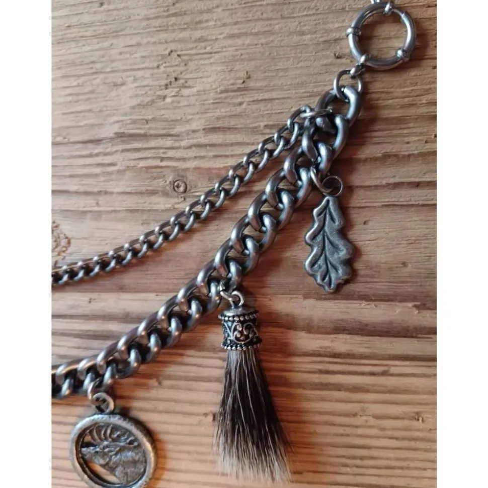 Bitte messen Sie dazu an Ihrer Lederhose den Abstand der Gürtelschlaufen (oder Knöpfe, je nachdem wo Sie das Charivari befestigen möchten).