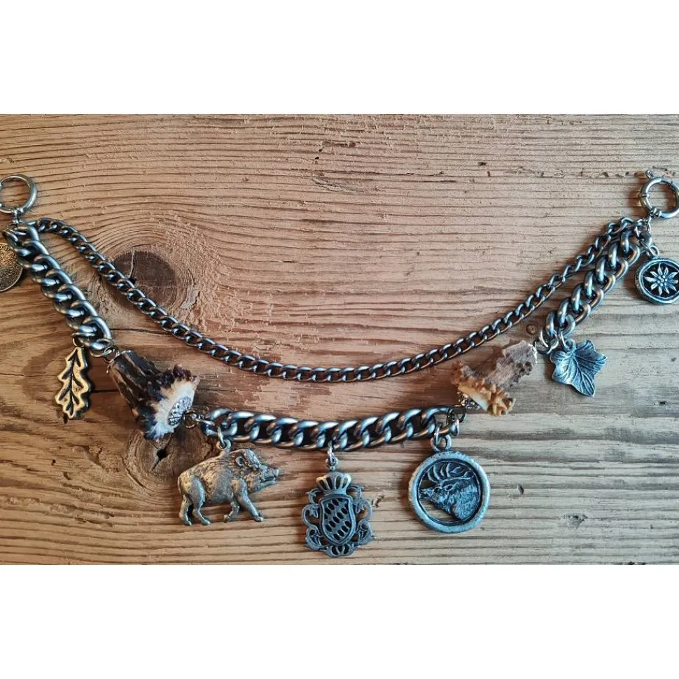 mit 7 fest angebrachten, sehr hochwertigen Trachtenanhängern aus Metall