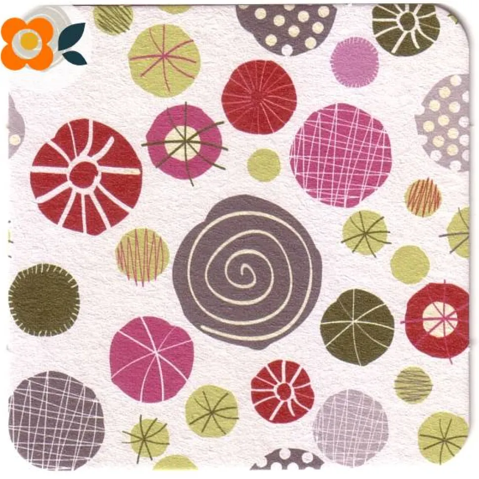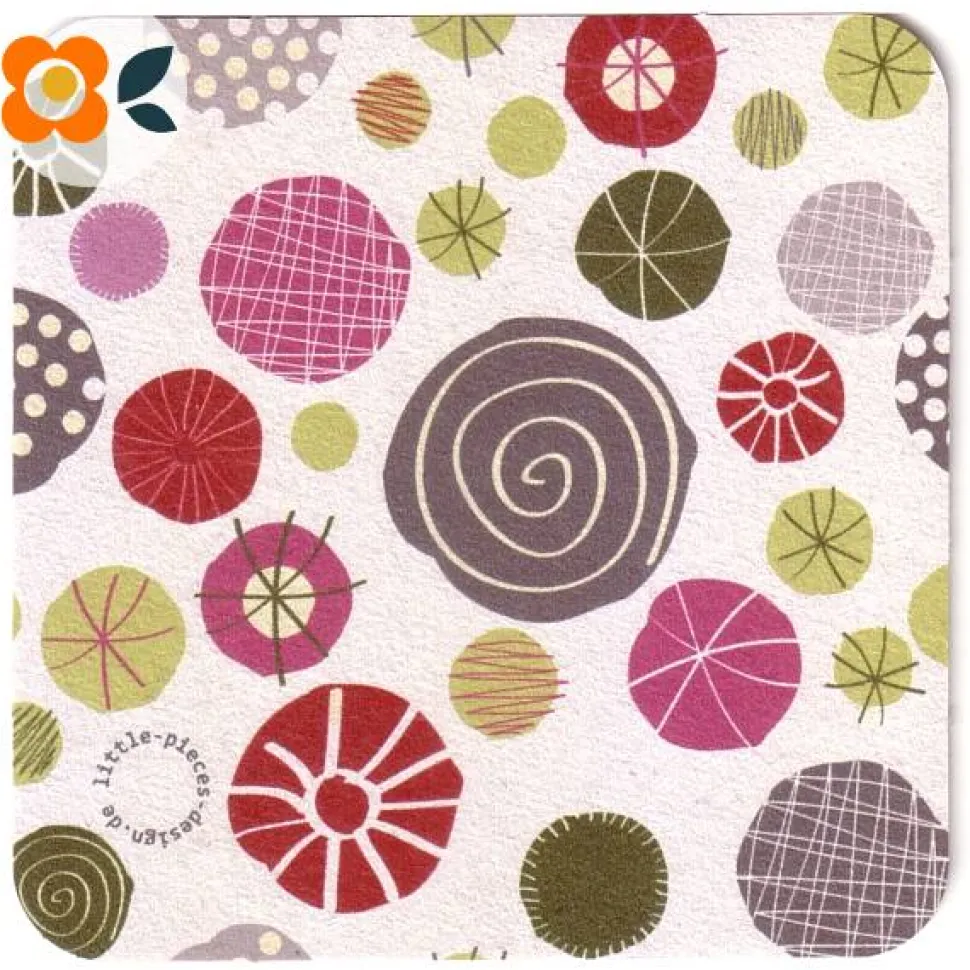 10 Bierdeckel Abstrakte Knöpfe, farbige, verzierte Dots im 60er Jahre Design