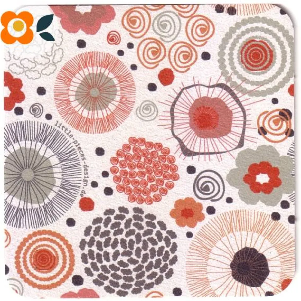 Die Untersetzer im Format 9,3 x 9,3 cm sind aus Bierdeckelpappe hergestellt, Höhe 1,5 mm, mit runden Ecken.