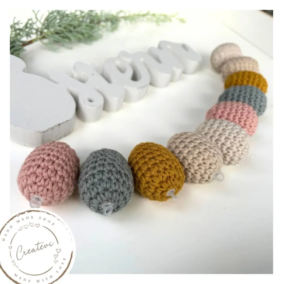 Die Häkeleier sind reine Dekorationsartikel und nicht als Spielzeug gedacht. Bitte halte sie von kleinen Kindern sowie von offenen Flammen und starken Wärmequellen fern. Wenn du Wert auf natürliche Materialien, Handarbeit und eine ruhige Osterstimmung legst, ist dieses Set eine passende Ergänzung für deine Frühlingsdekoration.