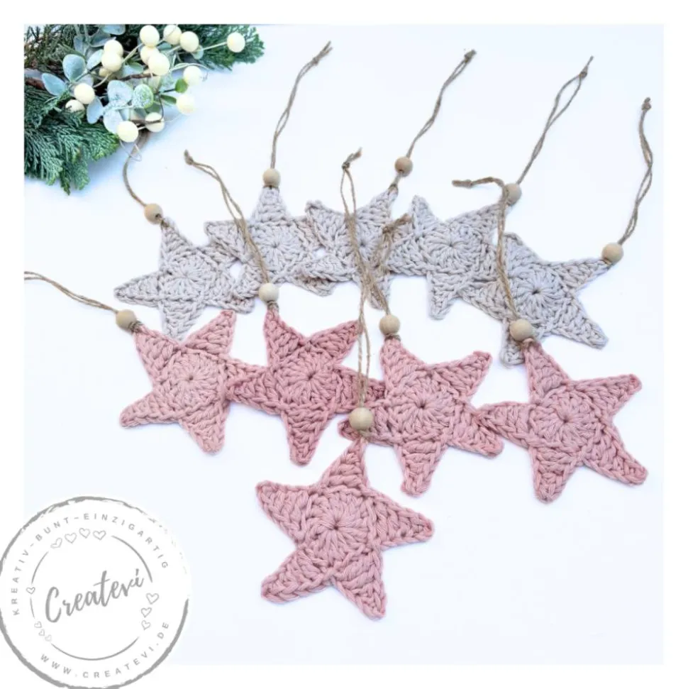 Die Häkelsterne wirken bewusst schlicht und zeitlos. Genau dadurch passen sie sich unterschiedlichen Einrichtungsstilen an – egal ob minimalistisch, nordisch oder klassisch. Du kannst sie am Weihnachtsbaum befestigen, als Fensterdeko nutzen oder Geschenke stilvoll verzieren. Auch auf dem Adventskranz oder als kleines Detail im Raum setzen sie ruhige, natürliche Akzente.