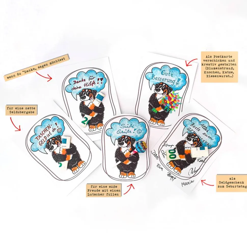 Diese Karte kannst du vielseitig anwenden. Egal ob selber bemalen oder entlang der Arme ein Schlitz setzen und mit Geld oder Lutscher befüllen, wird diese originelle Karte für Begeisterung sorgen.