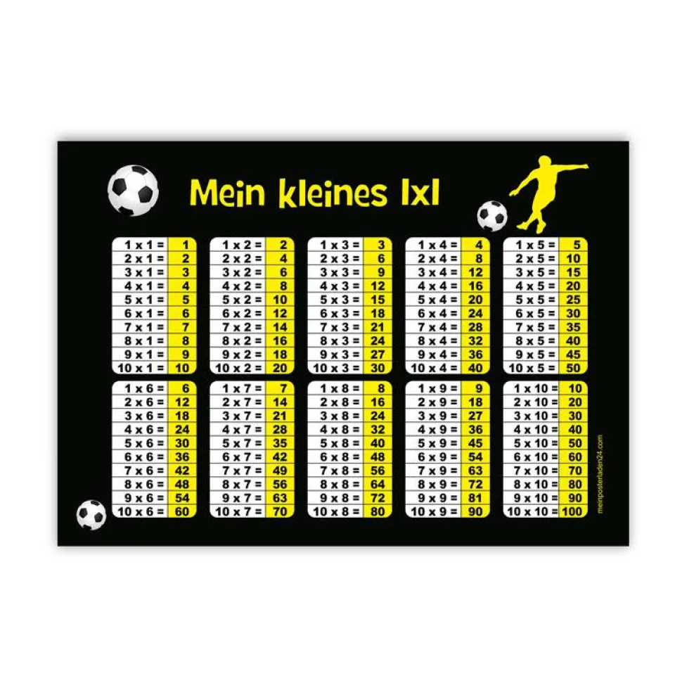 Entdecke das 1×1 Lernposter Fußballspieler gelb – perfekt für kleine Fußballfans! Mit diesem liebevoll gestalteten Poster lernst du das kleine Einmaleins spielerisch und motivierend.