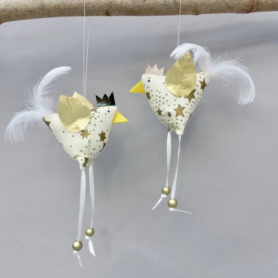 Die Stoffhühner haben sich so richtig aufgebrezelt: zur Feier des Tages tragen sie ihr Festtags-Gefieder mit hübschen Sternen. Die Hennen haben die Flügel gülden eingefärbt und ihr gold-farbenes Krönchen aufgesetzt.