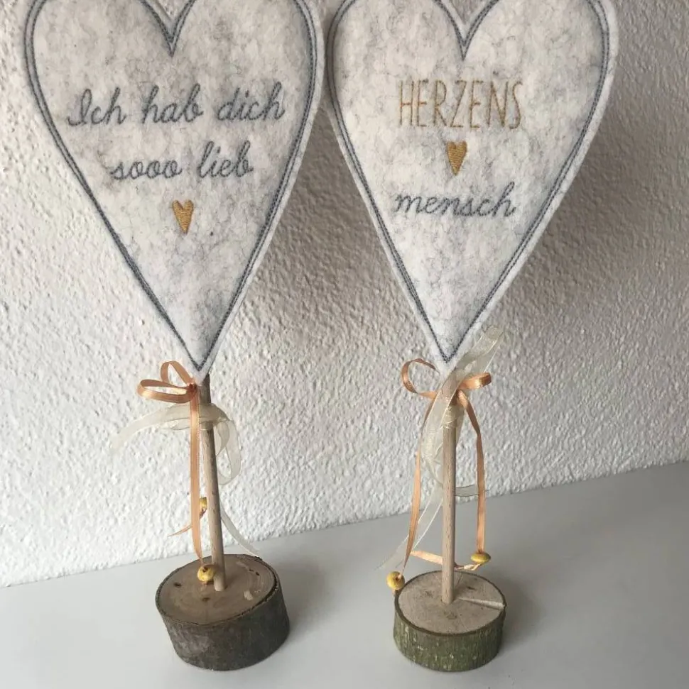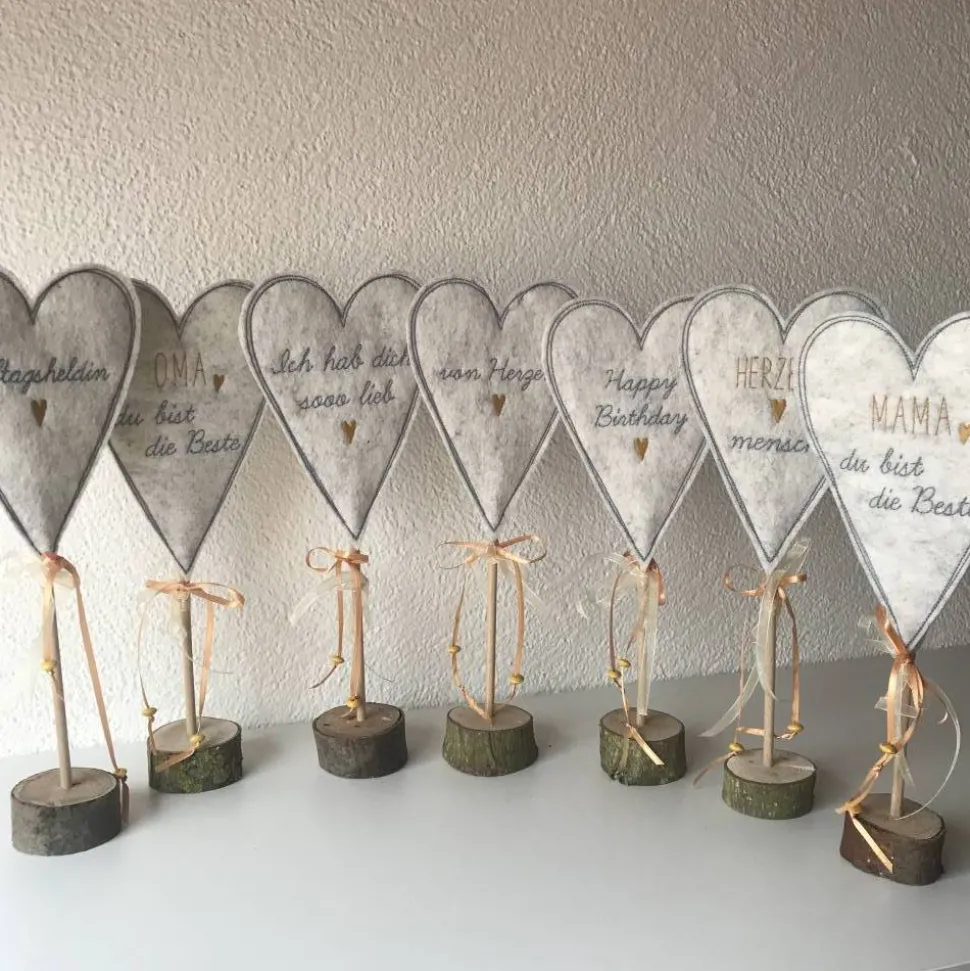 Die Herzen sind aus 100% Wollfilz und daher sehr edel und langlebig…