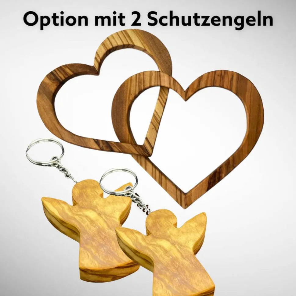 Tipp: Du kannst die Herzen auch mit persönlichen Schutzengeln aus Olivenholz (Schlüsselanhänger) kombinieren. Die Schutzengel findest Du auch hier im Shop! DEIN VORTEIL: In Kombination mit den verbundenen Herzen erhältst Du 2 Schutzengel mit Namensgravur für nur 24,00 EUR ! (Bitte die entsprechende Option wählen!)