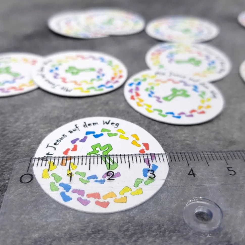 Diese 20 Streuteile aus Pappe (300 g/m²) sind die perfekte Dekoration für das Fest zum Thema „Mit Jesus auf dem Weg“. Mit einem Durchmesser von ca. 3,5 cm eignen sie sich ideal als Tischdeko oder für kreative Bastelprojekte.