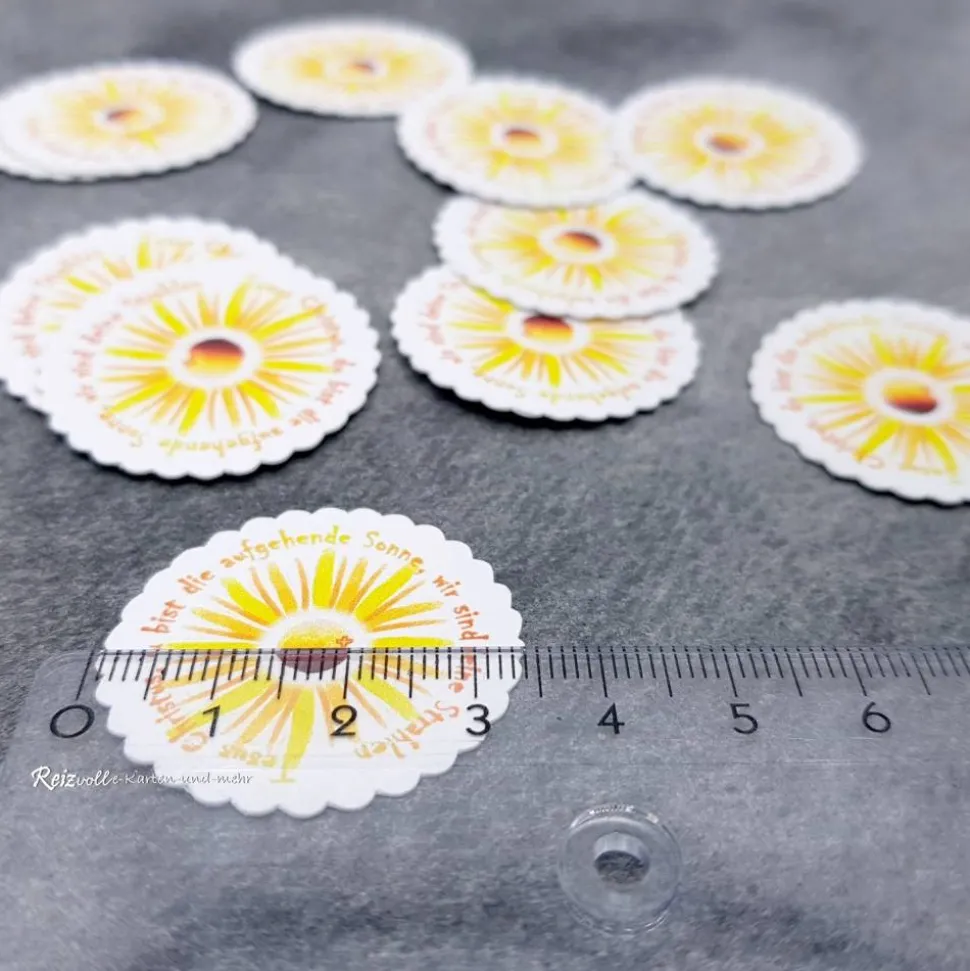 Diese liebevoll gefertigten Deko-Streuteile greifen das Thema „Jesus, du bist die aufgehende Sonne wie sind deine Strahlen“ auf und bringen eine warme, symbolträchtige Atmosphäre auf den Tisch.