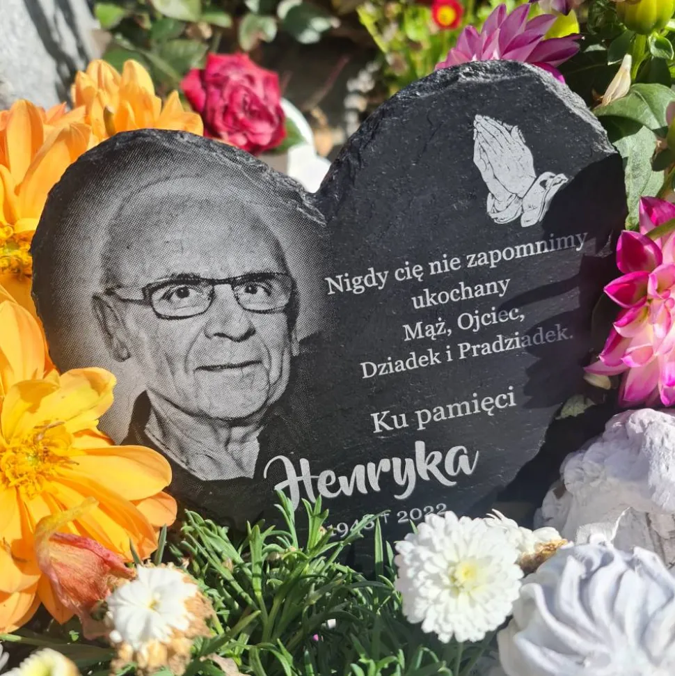 Schaffe eine bleibende Erinnerung mit einem individuellen Gedenkstein: Das 20 x 23 cm Schieferherz inkl. Gravur ist die perfekte Wahl als persönlicher Grabschmuck. Jedes Schieferherz wird nach deinen Wünschen graviert – mit Foto, Wunschtext und auf Wunsch kleinen Symbolen. So gestaltest du eine einzigartige Grabtafel, die liebevoll an einen besonderen Menschen erinnert.