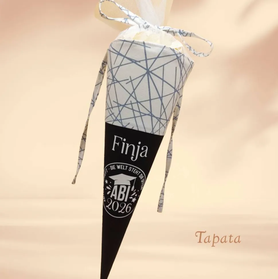 Angeboten wird eine kleine Schultüte mit einem passenden Spruch zum Abschluss(Abitur, Matura, Hochschulreife).