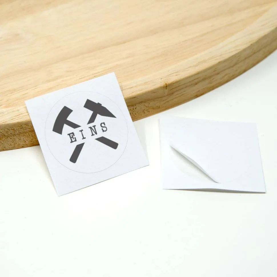 Die runden Aufkleber (4 cm Durchmesser) haben eine papierhafte matte Oberfläche. Sie können rückstandsfrei abgezogen werden und sind wieder haftend. Du kannst sie also problemlos nochmal neu positionieren, falls du dich verklebt hast.