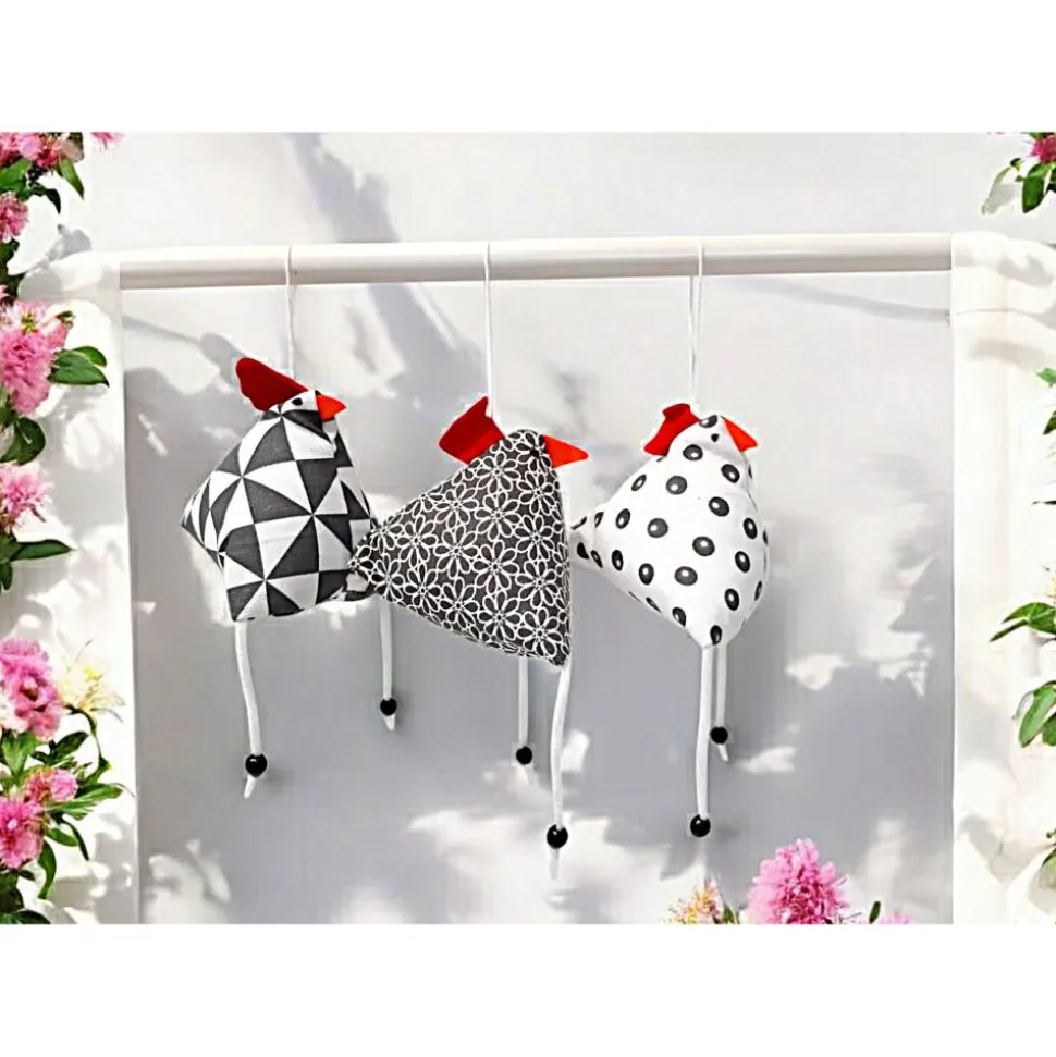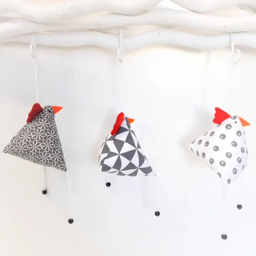 3-er Set „Verrückte Hühner“, genähte Osterhühner zum Aufhängen