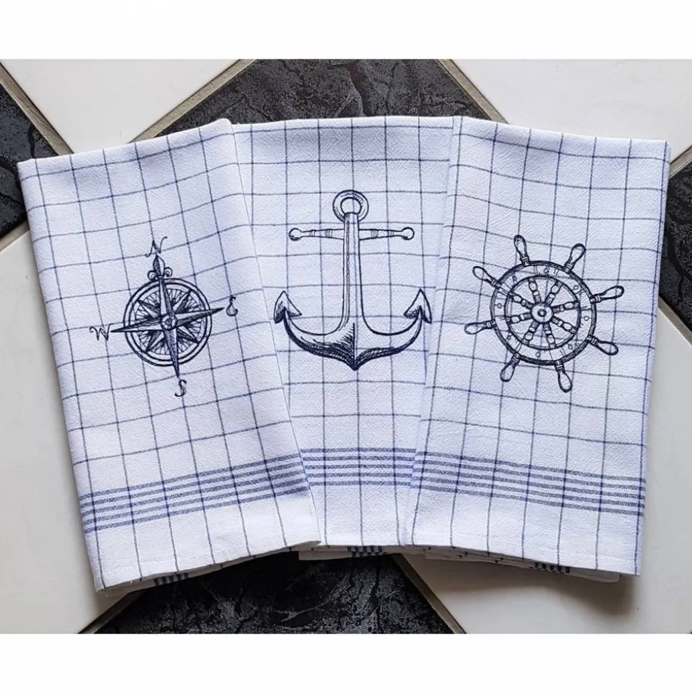 3 Geschirrtücher Küchentücher Maritim GESTICKT Halbleinen Set