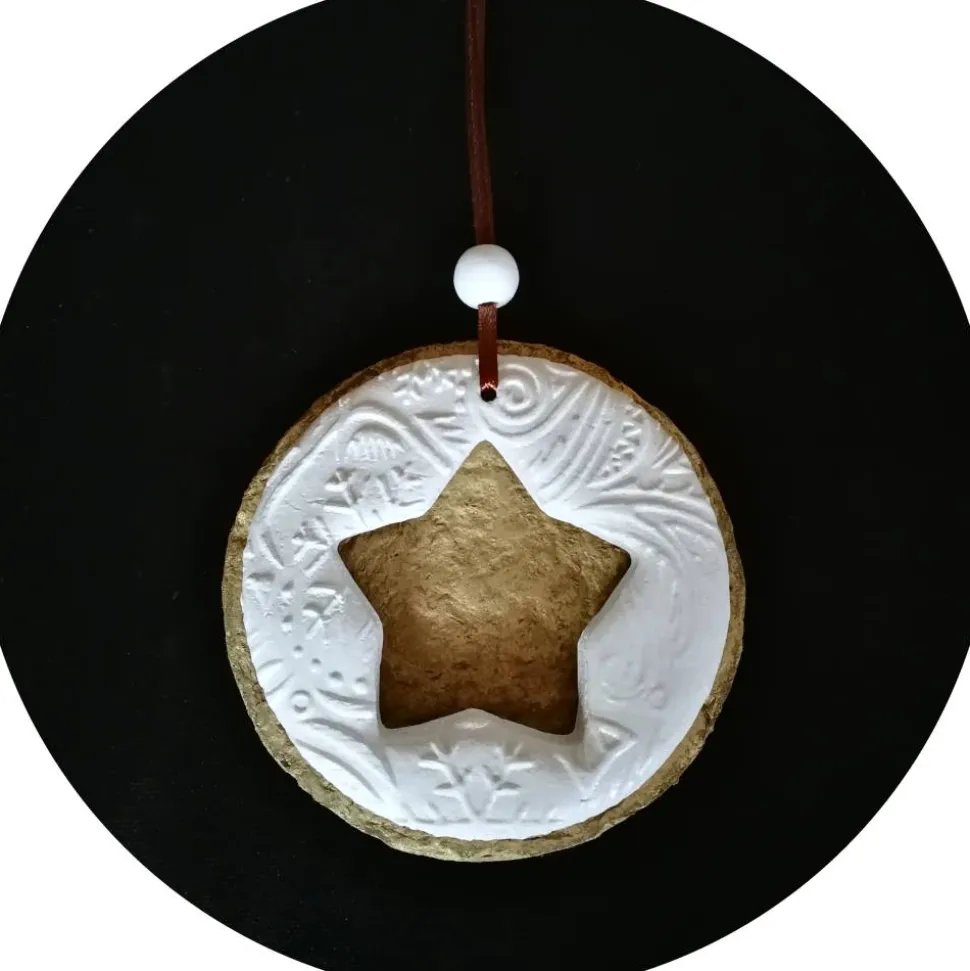 – gefertigt aus Salzteig, Pappmaché, Satinband, Holzperlen u. Acryllack
