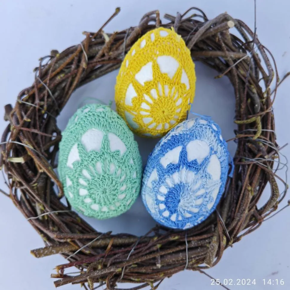 das Angebot gilt, wie abgeildet, für diese 3 Eier (ohne Weidenkranz)