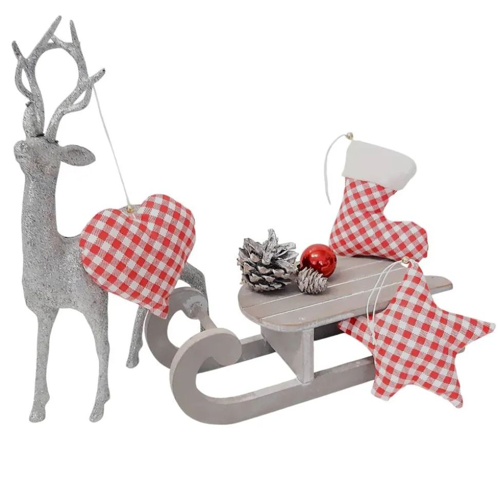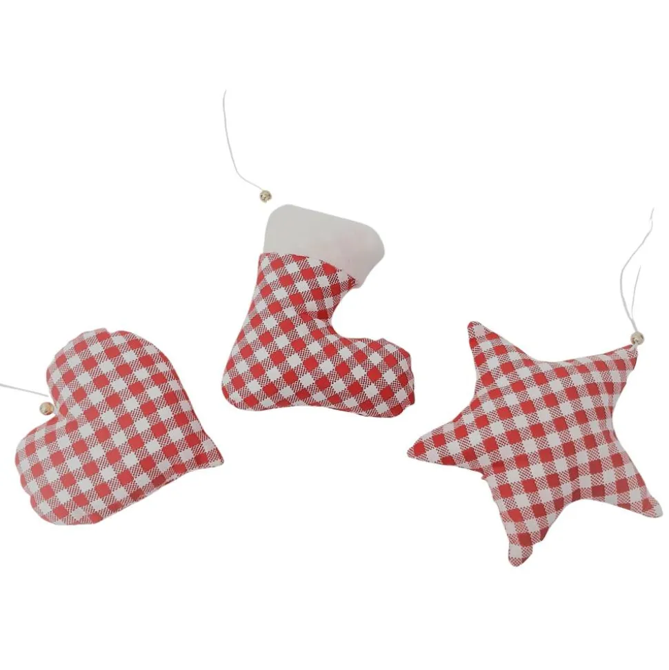 3-teiliges Baumschmuck aus Herz, Stern und Stiefel in rot kariert