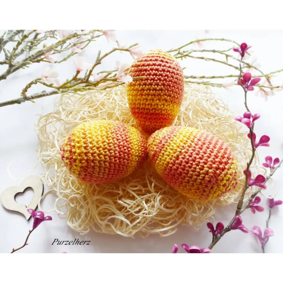 Kein Eierfärben…Umhäkelte zauberhafte große Ostereier, die gut zur jährlichen Tischdekoration geeignet sind.