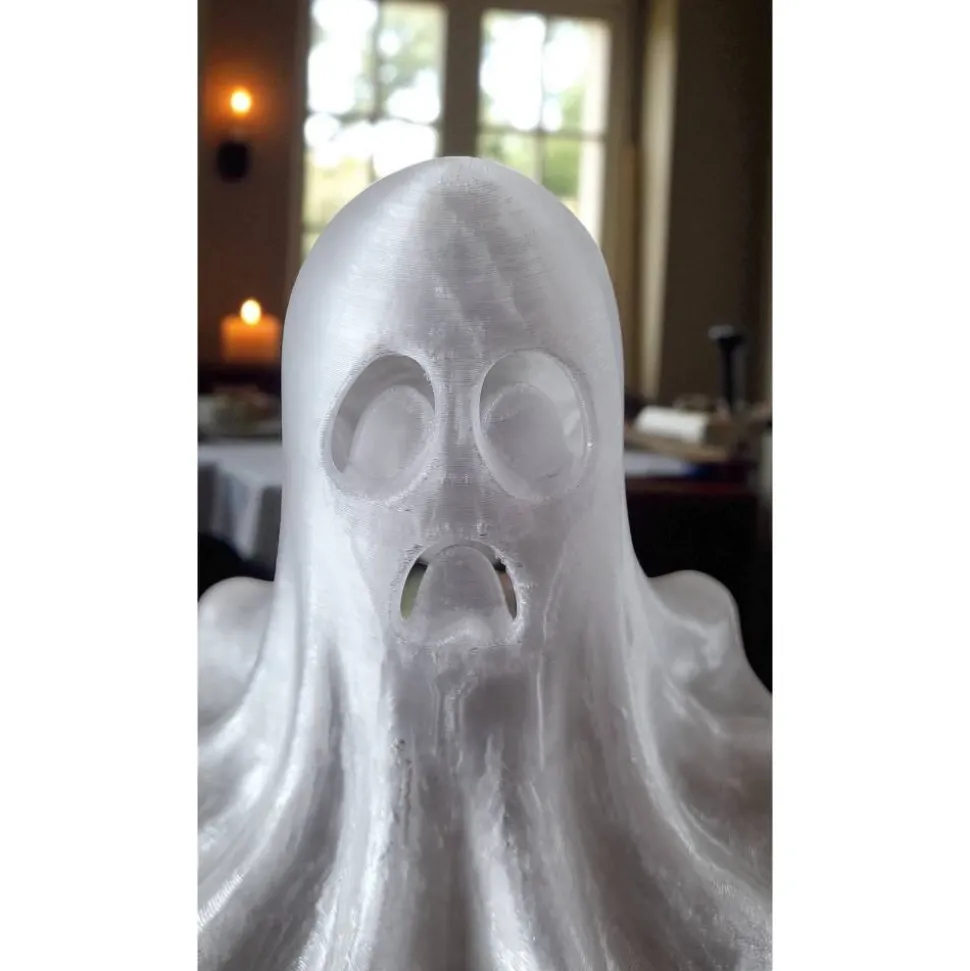 Jeder Geist ist ein handgefertigtes Unikat, das im präzisen 3D-Druckverfahren aus hochwertigem PLA Filament hergestellt wird. Das matte Finish und die filigranen Falten verleihen dem Geistergewand einen besonders edlen Look und machen den Kerzenhalter zu einem echten Hingucker auf Tisch, Regal oder Kaminsims.