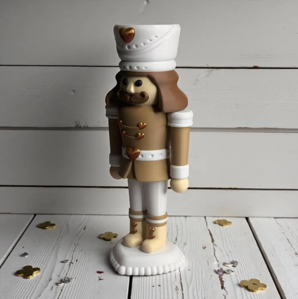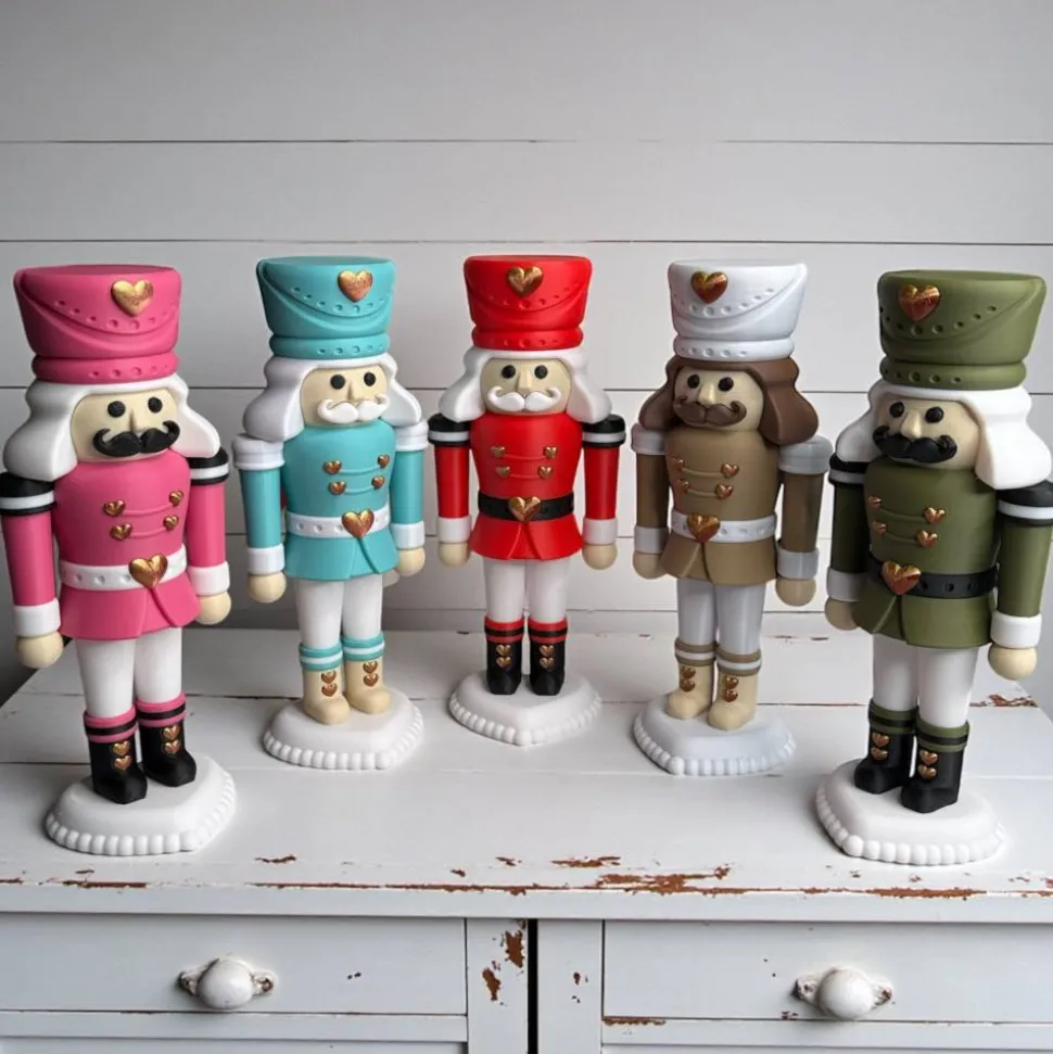 Dieser 3D-gedruckte Nussknacker – der „Herzknacker“ – ist in mehreren Farbvarianten erhältlich und wird von mir sorgfältig hergestellt, verklebt und nachbearbeitet. Du kannst zwischen folgenden Farben wählen: Beige, Rot, Türkis, Olivgrün oder Himbeere. Jede Variante verbindet die klassische Nussknackerform mit einem modernen Farbschema. Die goldenen Herzen setzen dabei einen deutlichen Akzent und machen die Figur zu einem dekorativen Element für die Advents- und Weihnachtszeit.