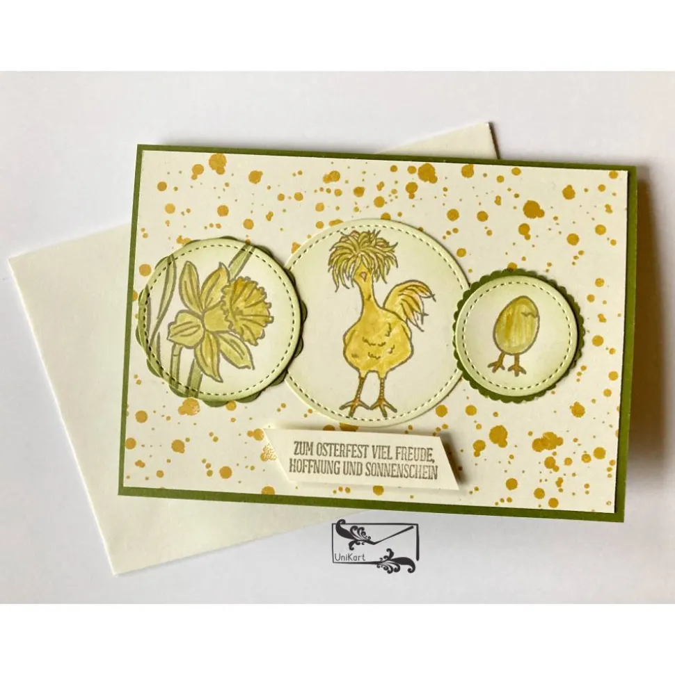 Verwendete Stempelfarben:Osterglocke, Olivgrün, Pfirsich, Savanne