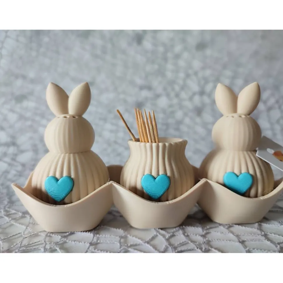 Dieses charmante 3D-gedruckte Set bringt Ordnung und eine Extraportion Liebe auf deinen Tisch. Das Set besteht aus einem Salzstreuer, einem Pfefferstreuer sowie einem passenden Zahnstocherständer – stilvoll vereint in einem harmonischen Design.
