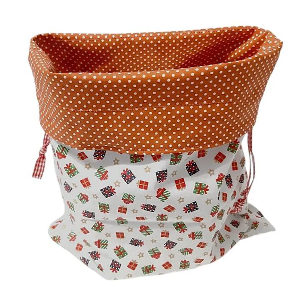 Gern verwendet zum Nikolaus und als Geschenkverpackung zu Weihnachten. Umgeschlagen als Gebäckschale verwendbar.