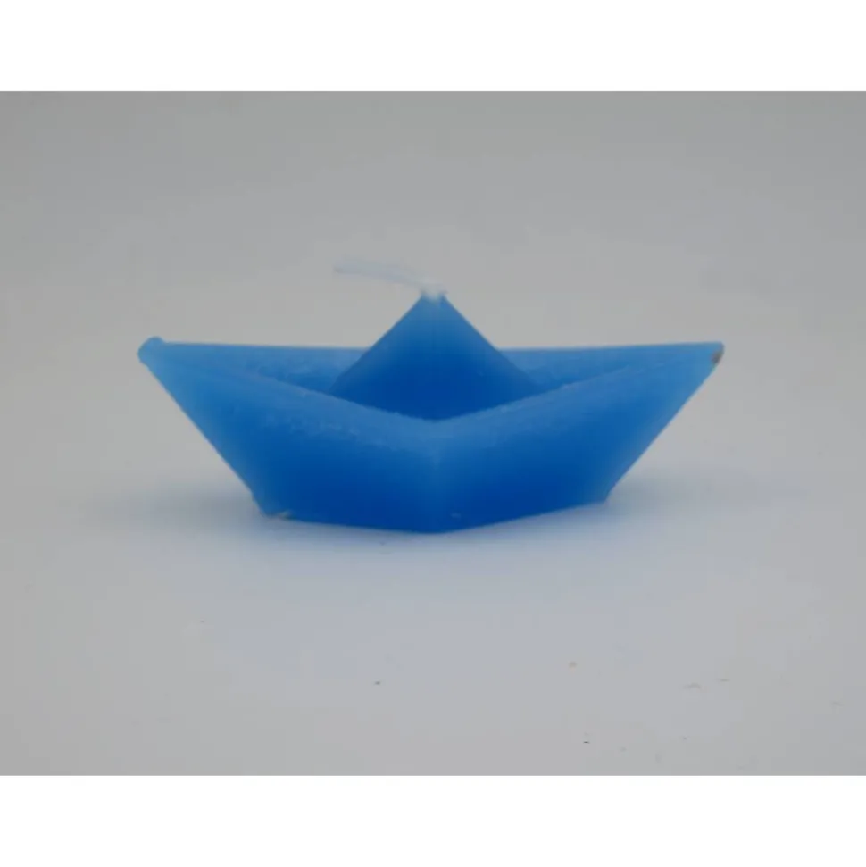 Bunte Papierbootkerze in verschiedenen Farben. Sie schwimmen wunderbar in einer Schale auf dem Sommertisch.
