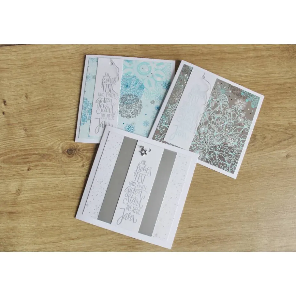 filigrane Schneeflocken und silber/grau dominieren bei diesen Karten