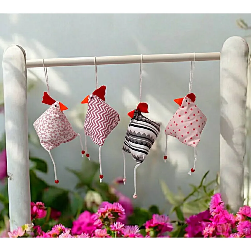 4-er Set „Verrückte Hühner“, Osterhühner zum aufhängen