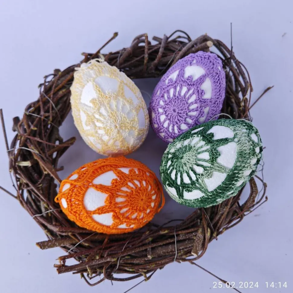 das Angebot gilt, wie abgeildet, für diese 4 Eier (ohne Weidenkranz)