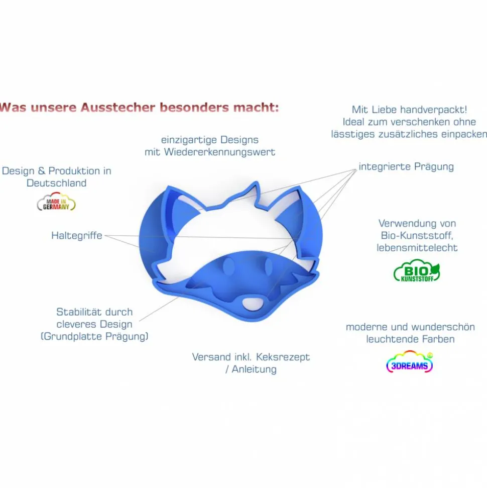 HERGESTELLT IN DEUTSCHLAND: Made & Designed in Germany von deutschem Start Up Alle Ausstecher werden vor der Produktion sorgfältig getestet und perfektioniert.