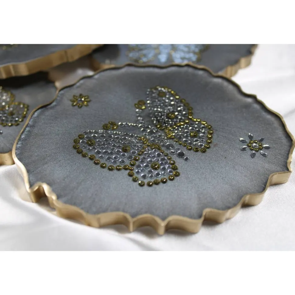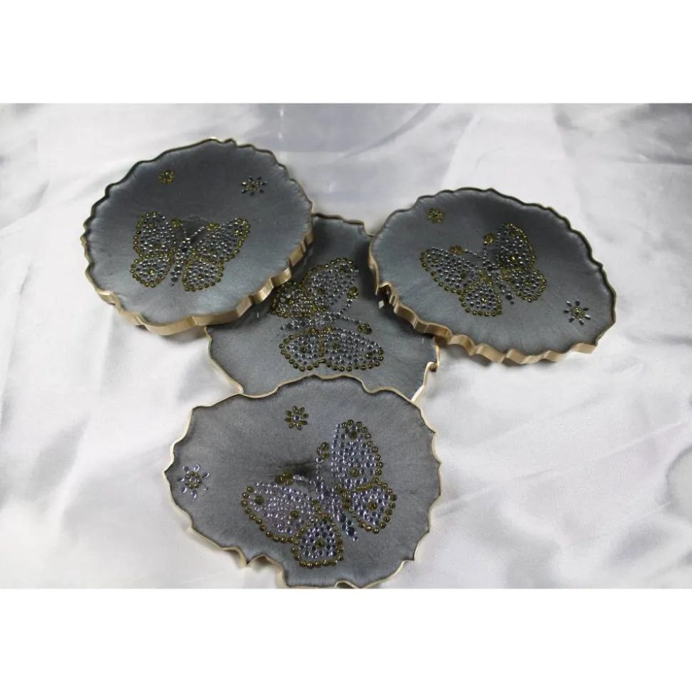 Die stilvollen Coaster schützen deine Oberflächen vor Kratzern und Flecken, während sie gleichzeitig als tolles Dekorationsstück fungieren. Das 4er Set besteht aus hochwertigem Resin, das besonders langlebig und widerstandsfähig ist. Die eingearbeiteten Schmetterlinge und das einzigartige Design machen die Coaster garantiert Eindruck auf deine Gäste.