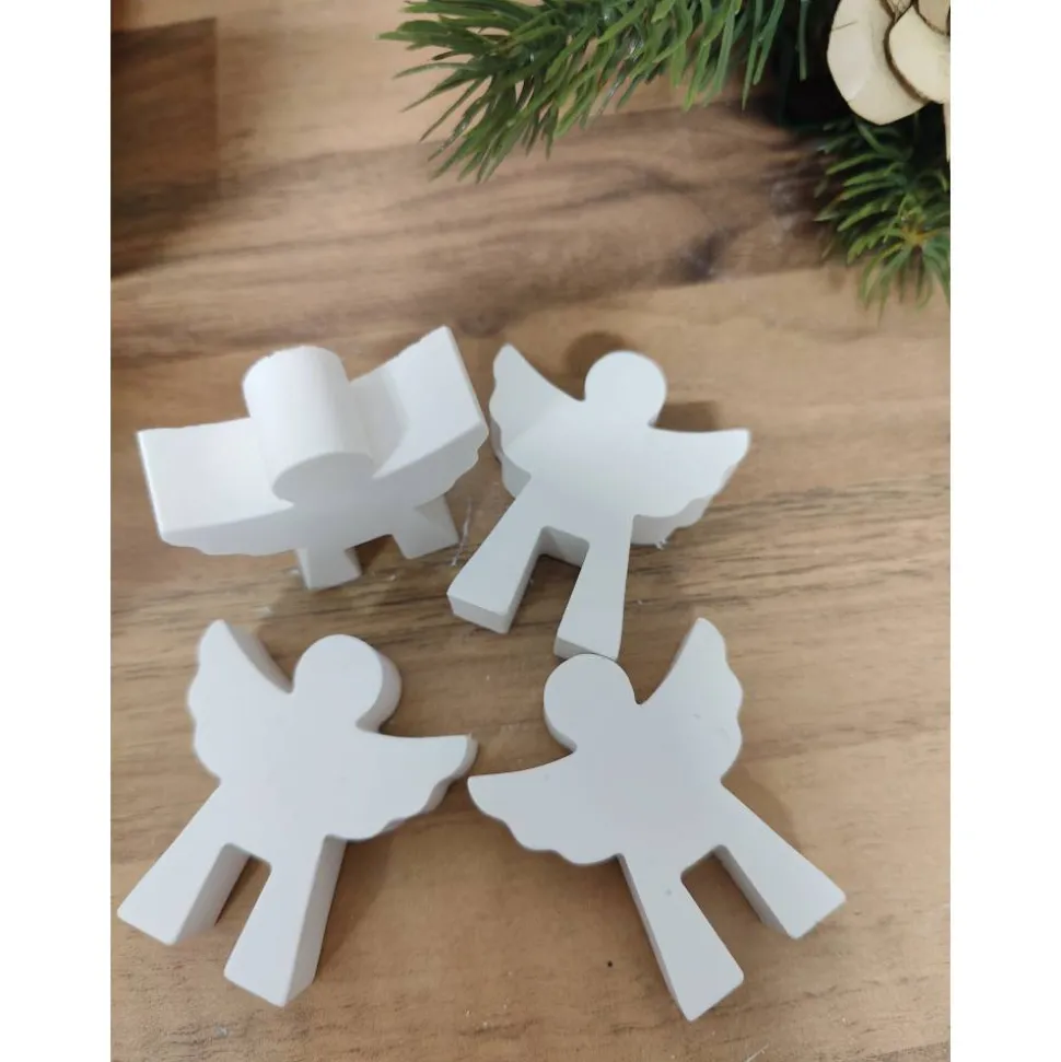 Das Engel-Set wurde aus Raysin, einer weißen Giessmasse aus Calciumsulfat, handgegossen und kann Lufteinschlüsse, Unebenheiten oder Farbabweichungen aufweisen.