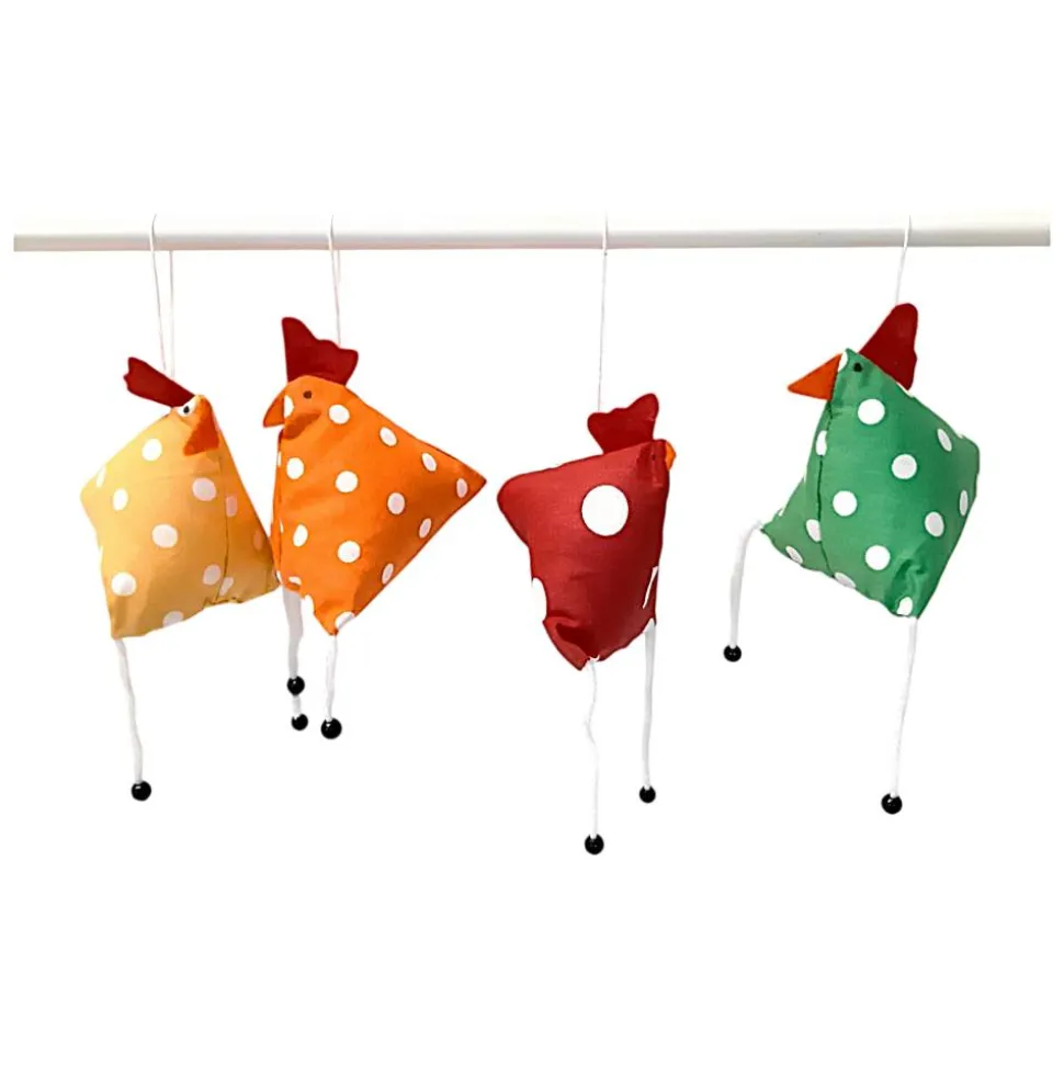 4er Set „Verrückte Hühner“, genähte Osterhühner zum Aufhängen