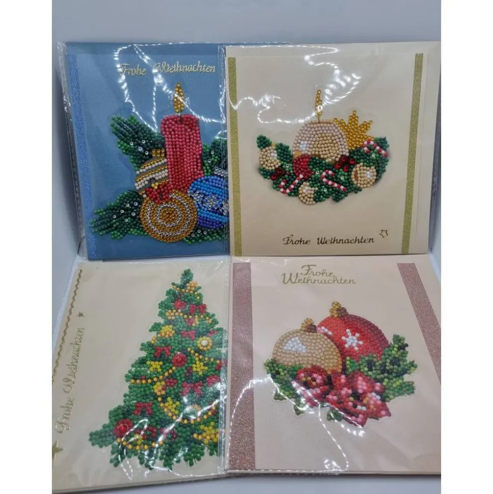 Entdecke ein exklusives 4er Set handgearbeiteter Weihnachtsgrußkarten mit funkelnden Diamond Painting Motiven!