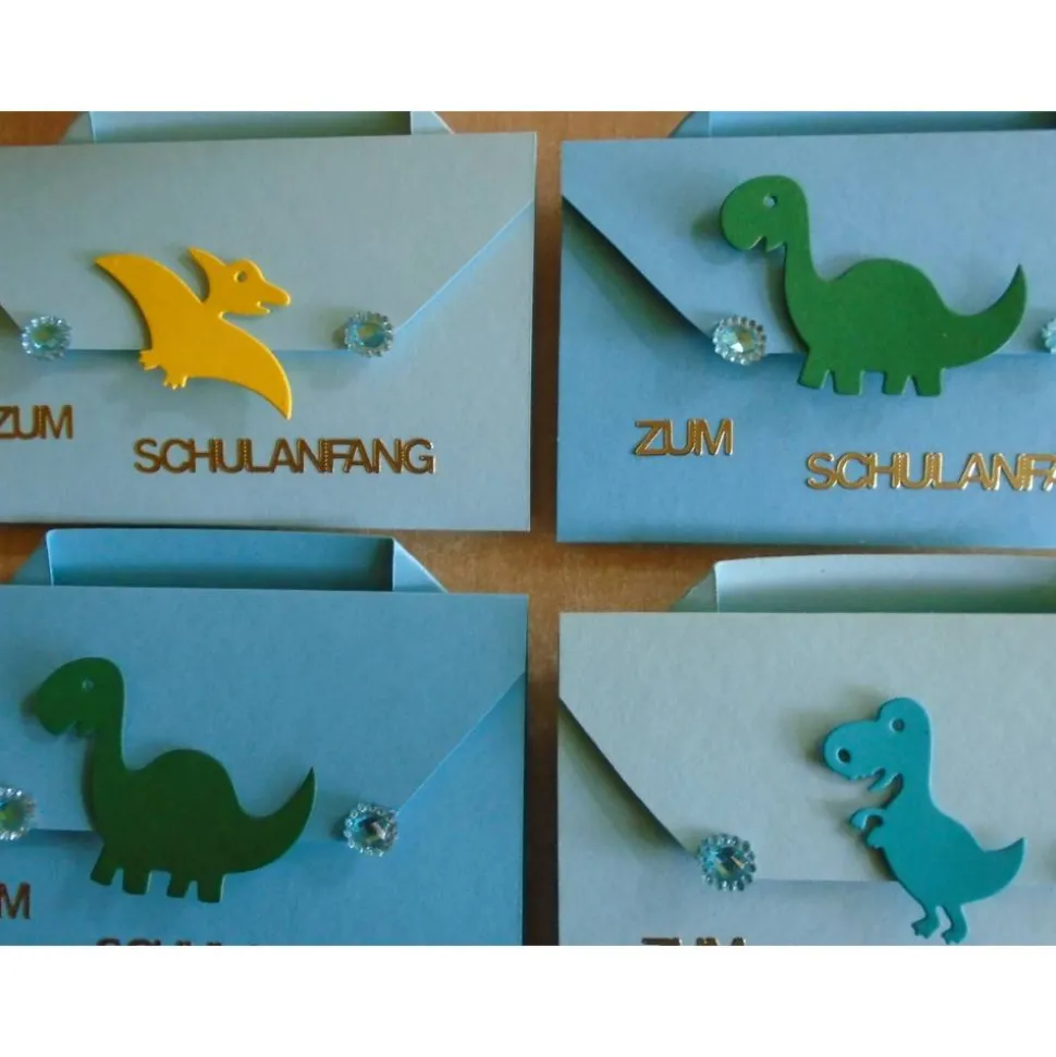 diese Karte Einschulung/Schulanfang habe ich als Einladungskarten und in der Form eines Schulranzen mit Dino/Dinosaurier motiven gefertigt..