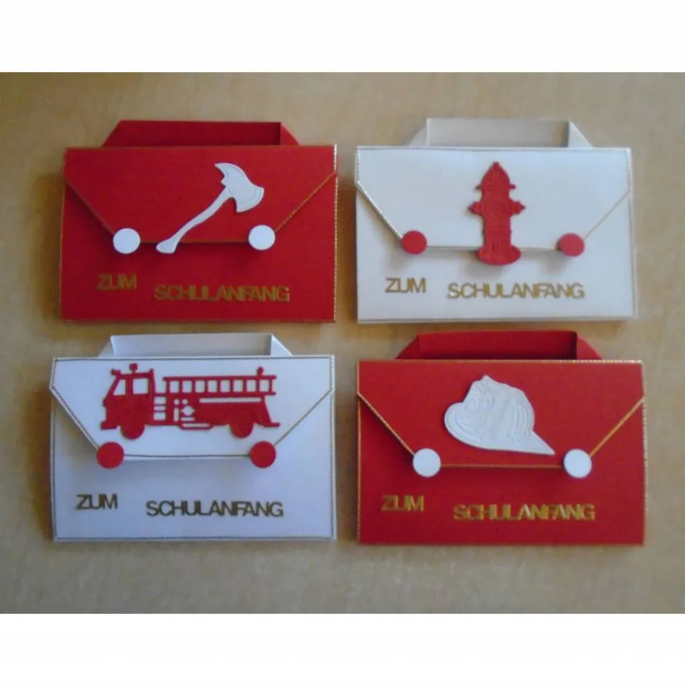 diese Karte Einschulung/Schulanfang habe ich als Einladungskarten und in der Form eines Schulranzen mit Feuerwehr motiven gefertigt..