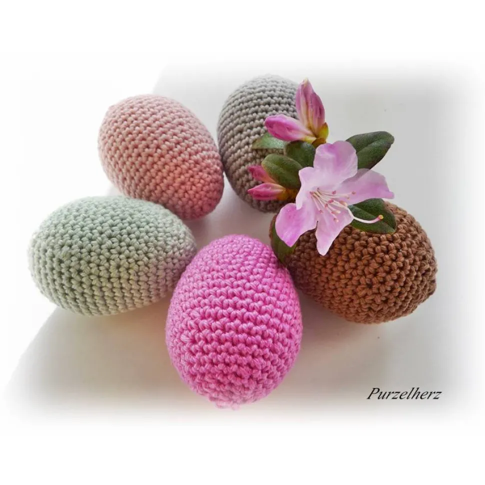 Kein Eierfärben…Umhäkelte zauberhafte große Ostereier, die gut zur Tisch- oder Streudekoration geeignet sind.