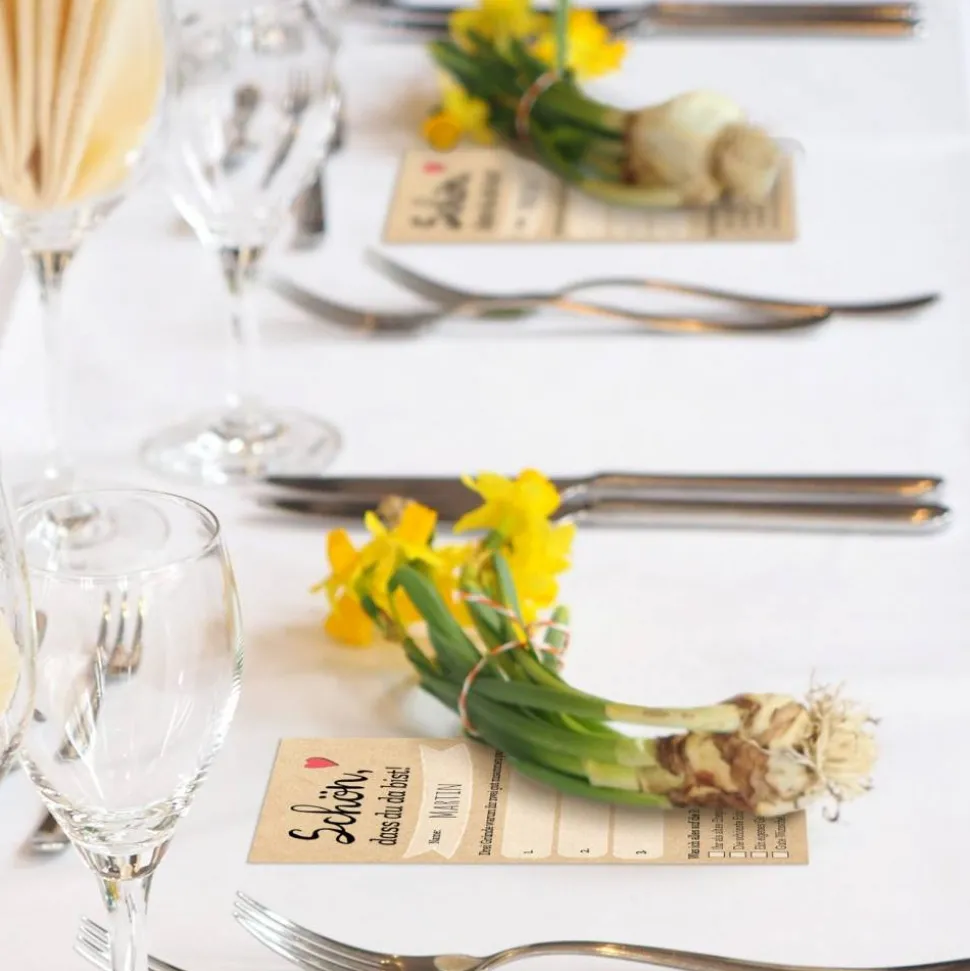 Im Vergleich zu anderen Karten sind diese unterschiedlich, damit Gäste und vor allem das Hochzeitspaar später immer wieder neu überrascht wird.Auch als „Platzkarte“ mit Name