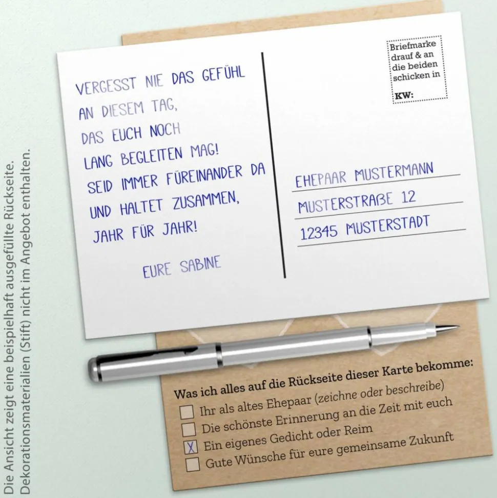 3. Die Karten entweder nach dem Hochzeitsspiel wieder einsammeln und selbst wöchentlich an das Brautpaar schicken