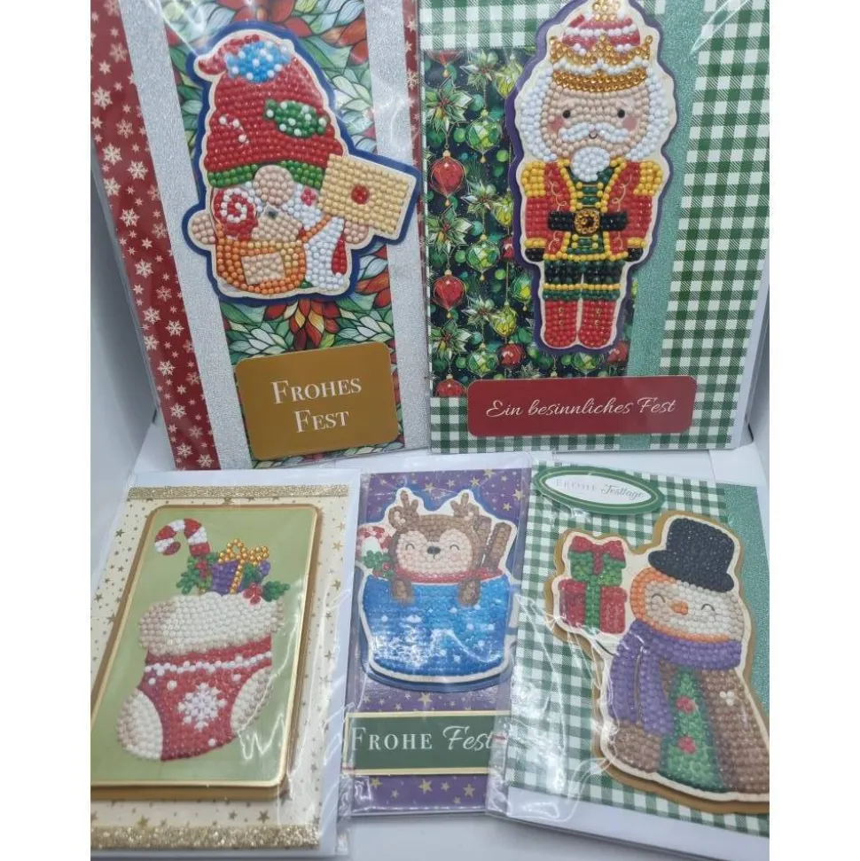 Entdecke ein exklusives 5er Set handgearbeiteter Weihnachtsgrußkarten mit funkelnden Diamond Painting Motiven!