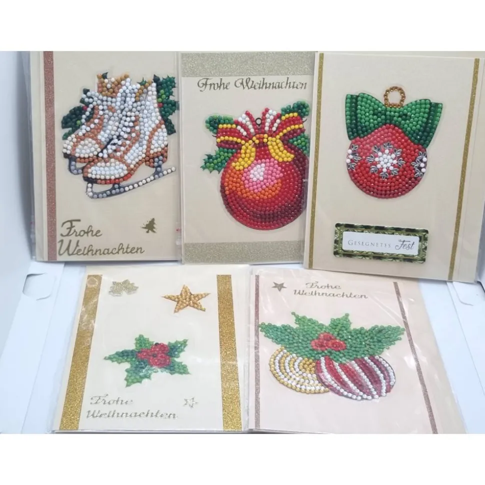Entdecke ein exklusives 5er Set handgearbeiteter Weihnachtsgrußkarten mit funkelnden Diamond Painting Motiven!