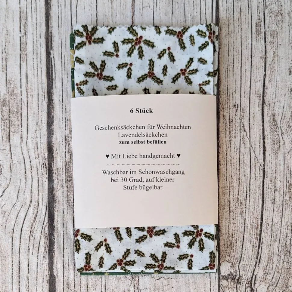 Maße der Säckchen: je ca. 11 x 19 cm da Handzuschnitt, 100 % Baumwolle