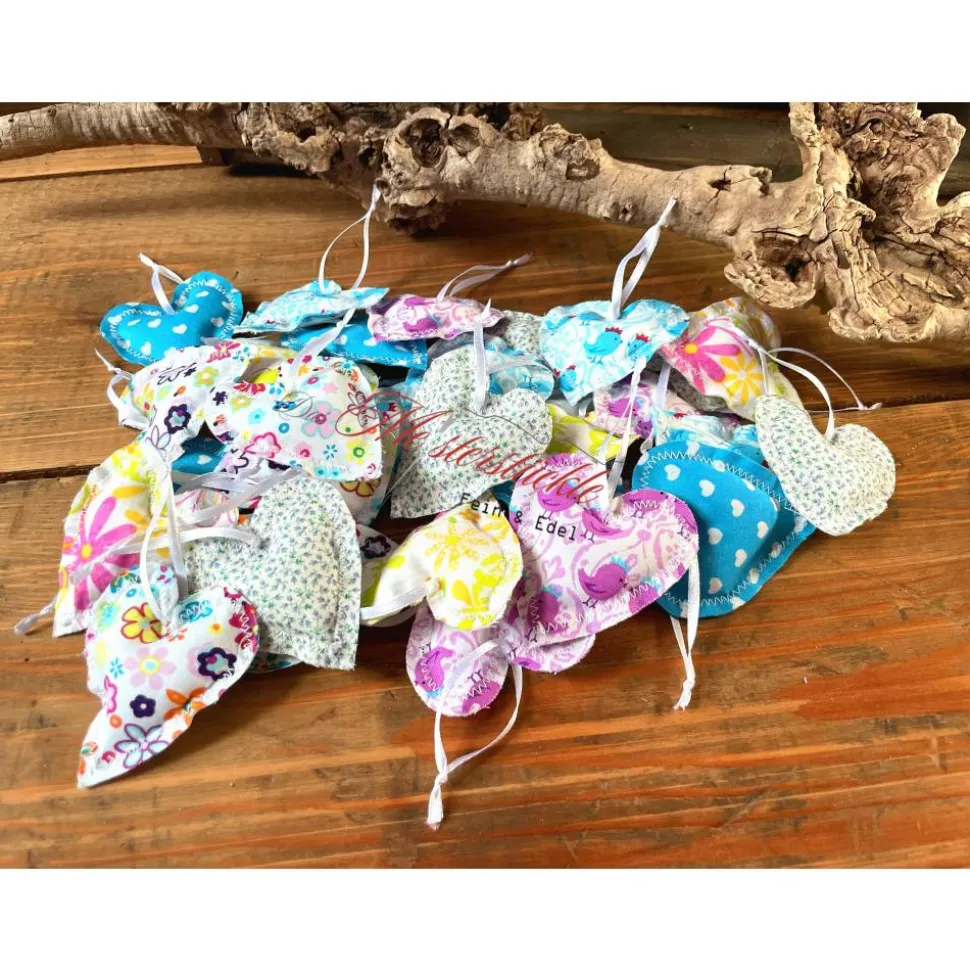 Besonders süß sehen die bunt gemischten Herzchen an einem Korkenzieherast oder Dekoholz aus. Eine Ganzjahresdeko der besonderen Art.