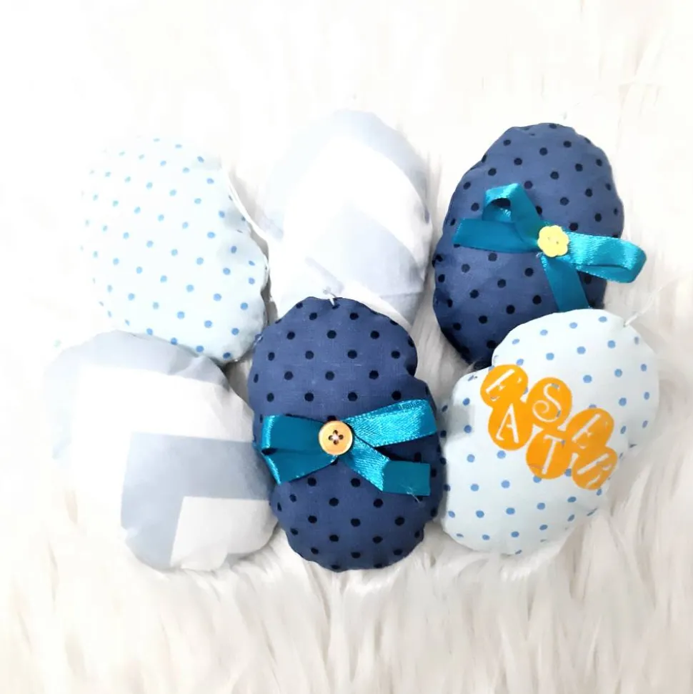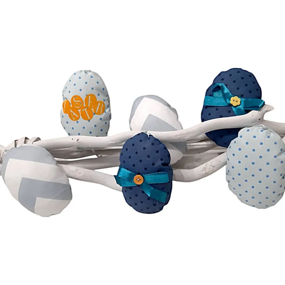 Süße Stoffostereier aus Baumwolle zum Aufhängen. Tolle Oster- und Frühlingsdeko, die überall ihr Plätzchen finden.