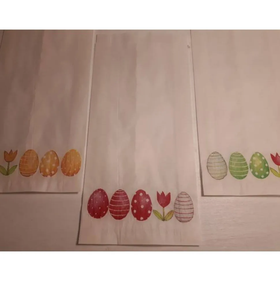 auf der Vorderseite sind sie liebevoll mit bunten Ostereiern und Tulpen in Serviettentechnik verziert …