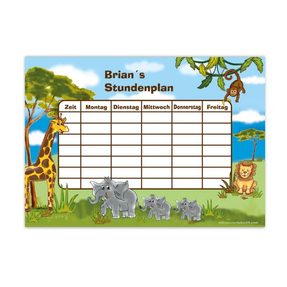 A4 Stundenplan | Afrika Savanne – personalisierbar, optional wiederbeschreibbar