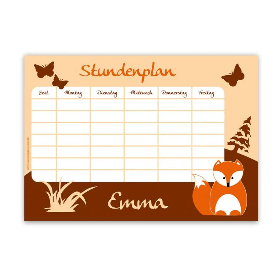 A4 Stundenplan | Fuchs – personalisierbar, optional wiederbeschreibbar
